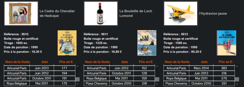 Le site mesfigurines.net est la première plateforme privée dédiée aux passionnés de figurines inspirées de l'univers de Tintin. Vous y trouverez des informations sur les adjudications de figurines, plaques émaillées, albums et bien plus encore. Les premières adjudications datent de 2010. Vous y découvrirez également les nouveautés de Tintinimaginatio. Identifiez-vous ou inscrivez-vous |